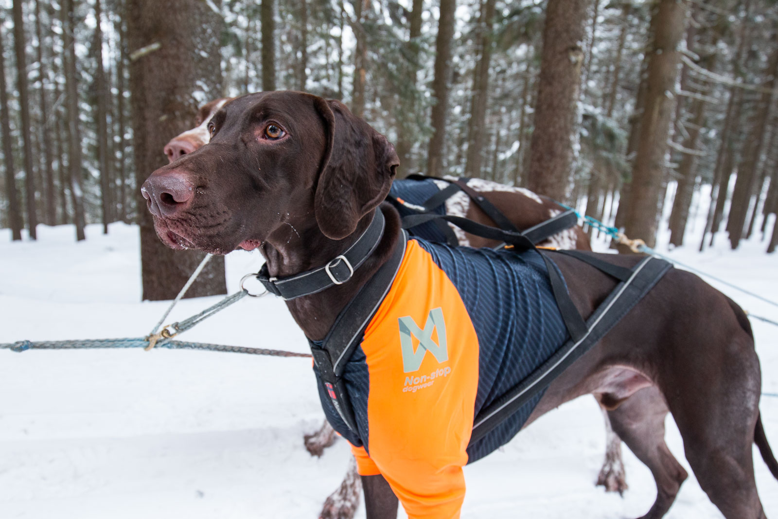 Přiléhavé elastické tričko, které spolehlivě ochrání vašeho psa proti odřeninám od sněhu či tvoření sněhových hrudek na srsti v oblasti hrudníku.