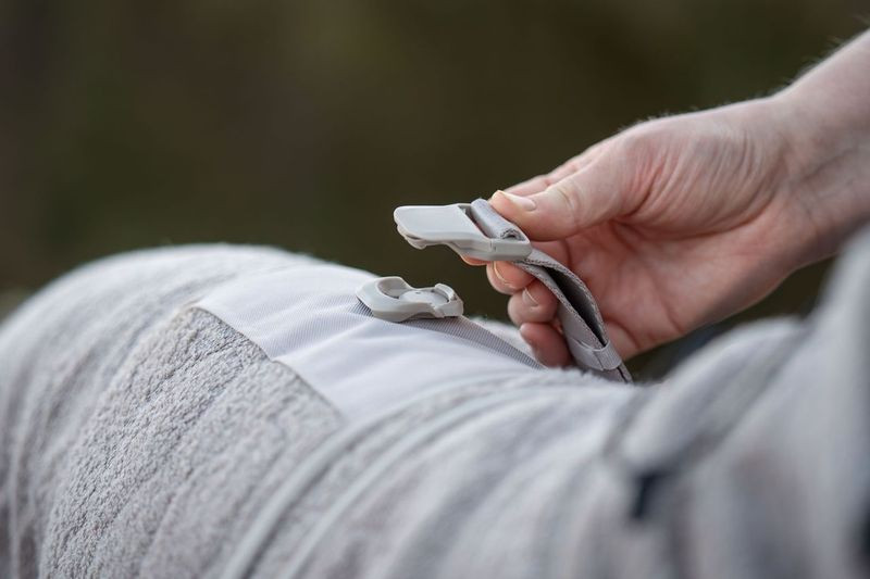 Praktické detaily, ako je pevná magnetická spona, popruhy na zadných nohách a možnosť nastavenia obvodu krku, zabezpečujú stabilné a pohodlné uchytenie aj počas pohybu. Vďaka maximálnemu pokrytiu tela, krku a zadných nôh je župan ideálny pre všetkých športovo založených psov, vrátane tých s dlhou srsťou alebo dlhými ušami. Jednoduchá údržba materiálu a premyslená konštrukcia robia z tohto županu spoľahlivého pomocníka pri športových podujatiach, tréningoch aj náročných výletoch.