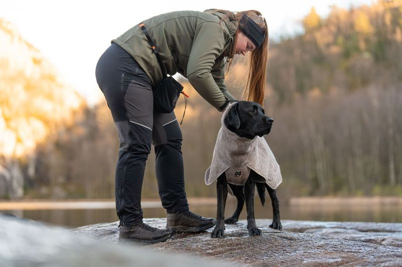 Pre psov, ktorí sa nezastavia pred žiadnym terénom a aktívne športujú, je kvalitné vybavenie základ. Tento psí župan je navrhnutý tak, aby poskytol psovi potrebný komfort počas sušenia po práci vo vode, tréningu v daždi alebo po športovej aktivite. Dvojvrstvová konštrukcia kombinuje vysoko absorpčnú vnútornú vrstvu, ktorá okamžite odvádza vlhkosť zo srsti, s rýchloschnúcou vonkajšou vrstvou s uterákovou štruktúrou. Vďaka vysokej absorpčnej schopnosti až 4 litre vody na meter štvorcový sa pes rýchlo usuší a nezostáva dlho mokrý, čo znižuje riziko prechladnutia a vzniku „hotspotov“ aj v nepriaznivých podmienkach.