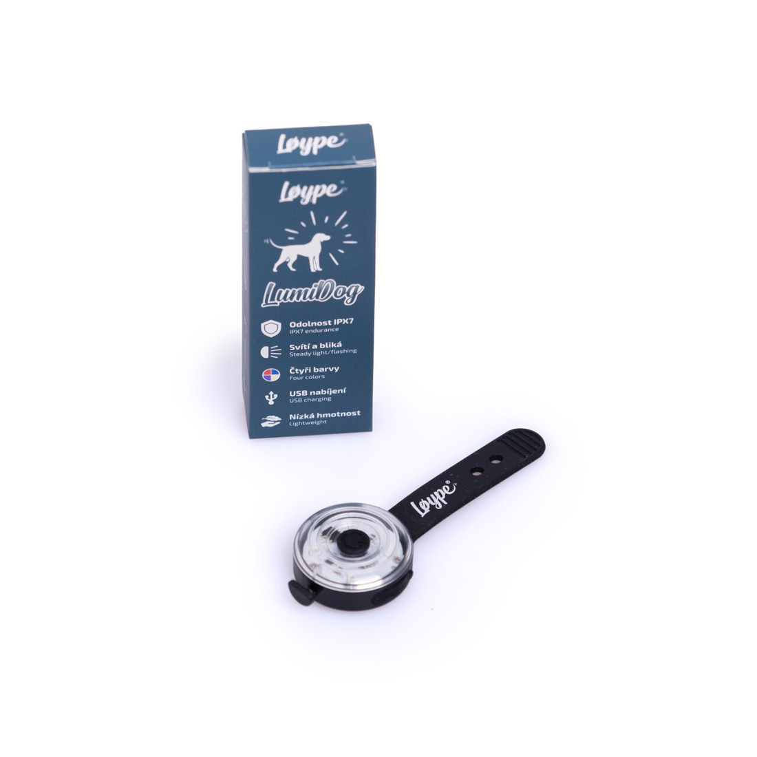 Dobíjateľné LED svetlo na obojok s odolnosťou IPX7 zlepší viditelnosť psa v tme, v daždi alebo v lese. Ponúka dva režimy svietenia (stále / blikanie), 4 farby a výdrž až 48 hodin. Váží len 16 g, dobije sa za 1,5 h cez kabel USB-A/USB-C a vďaka kompaktným rozmerom sa ľahko pripne na každý obojok.