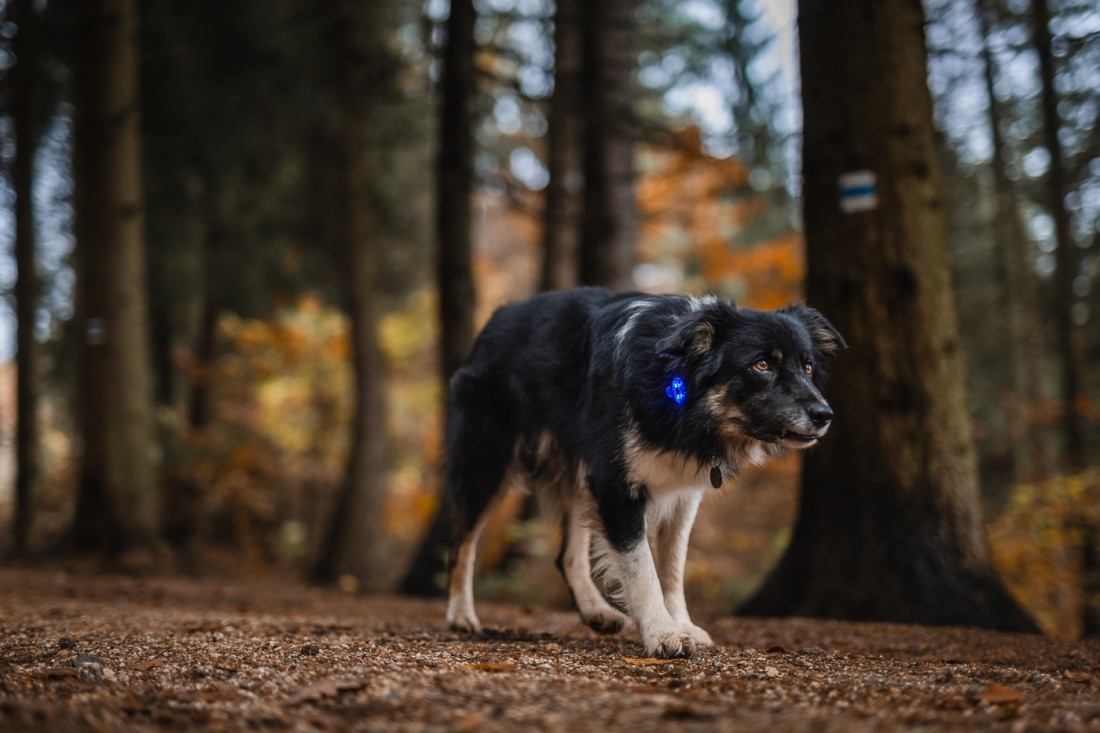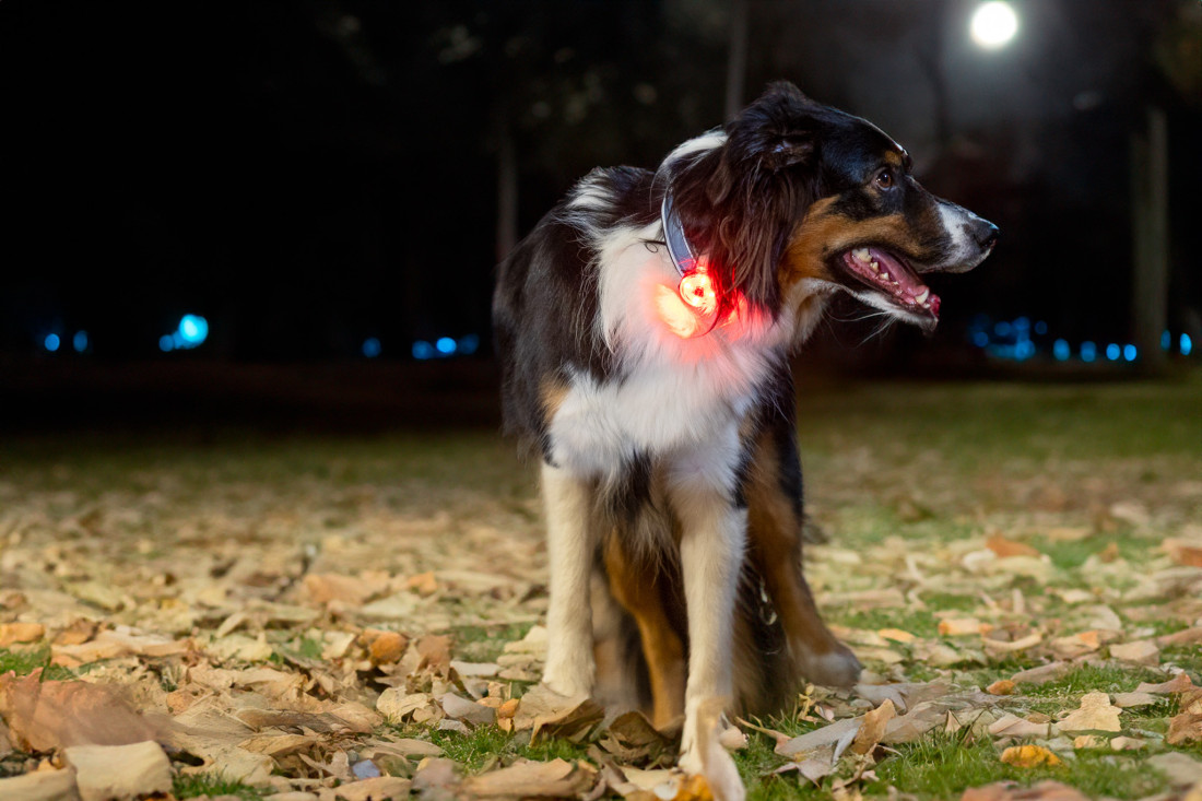 Dobíjateľné LED svetlo, ktoé zlepší viditeľnosť a bezpečnosť psa nielen v okolí cesty.
